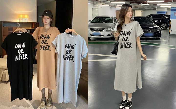 레터링 박스 롱 원피스