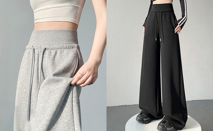 와이드 밴딩 하이웨스트 기모 트레이닝 팬츠