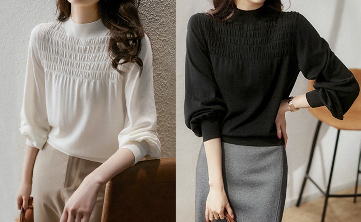 잔잔한 셔링 반폴라 니트