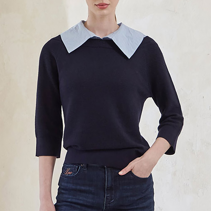 레이어드 배색 셔츠 카라 니트 3컬러