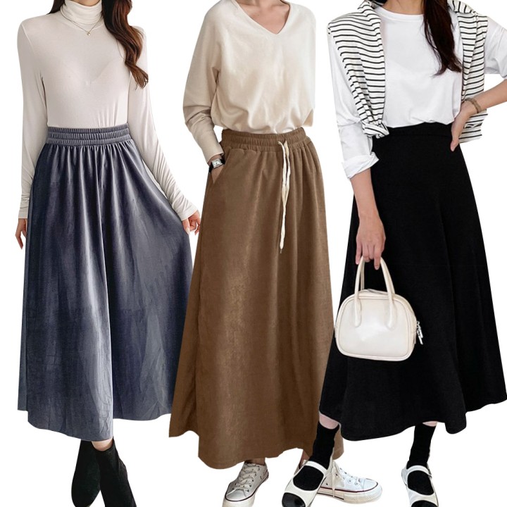 FW감성 코듀로이&벨벳 밴딩 롱스커트 4종