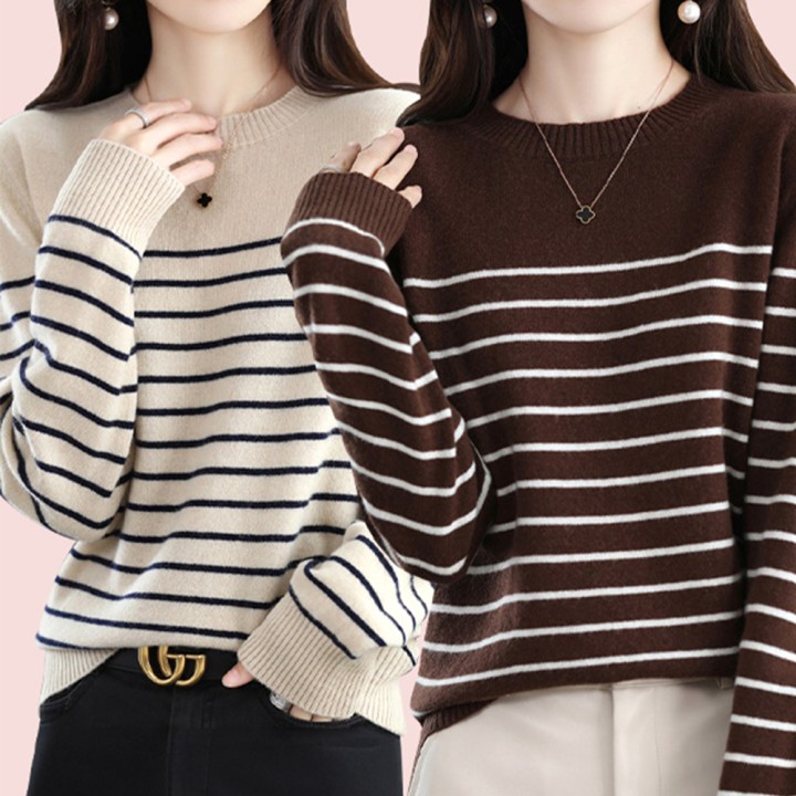 스트라이프 라운드넥 니트