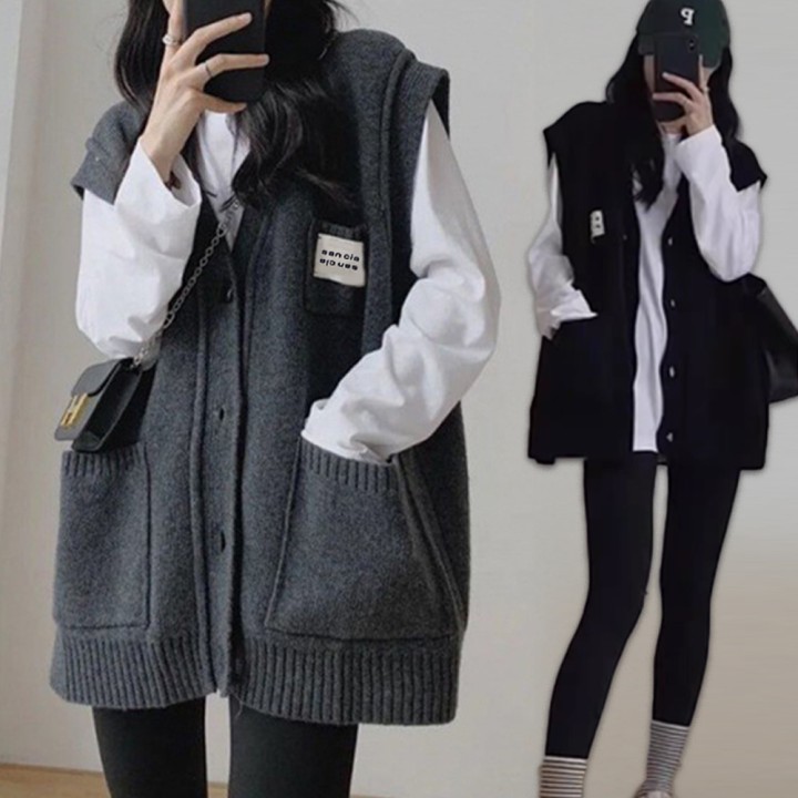 언발란스 사이드 버튼 투피스 셔츠니트 (3컬러)