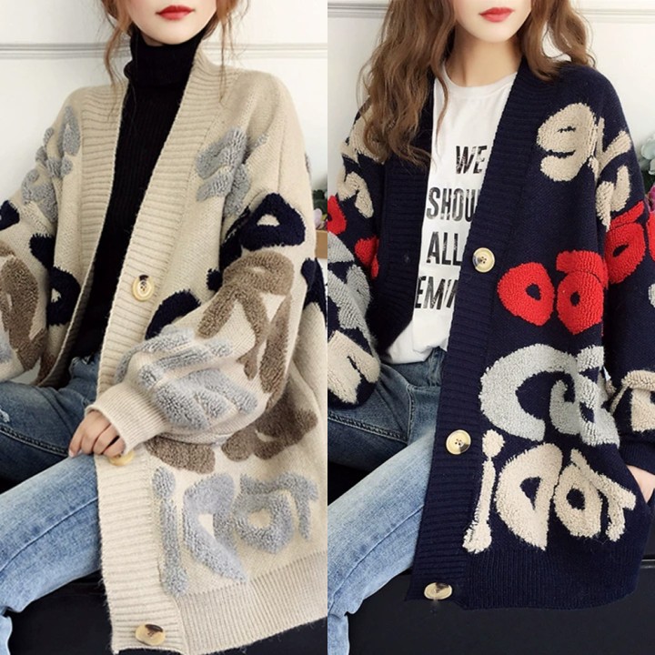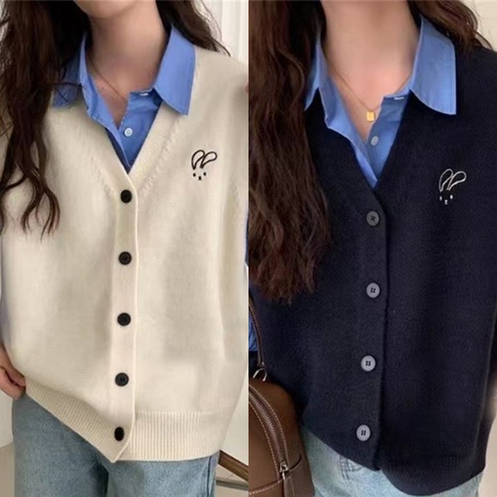 [★무료배송★] 냥이 패치 브이넥 니트 가디건