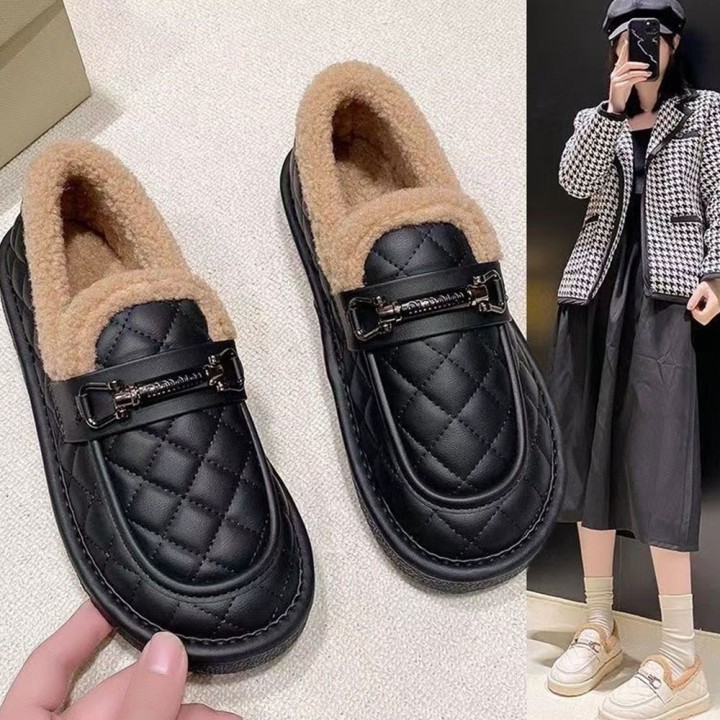 금장포인트! 폭신 퍼안감 퀼팅 방한로퍼 2컬러