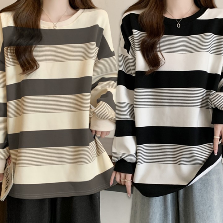 오버 스트라이프 루즈핏 긴팔 티셔츠