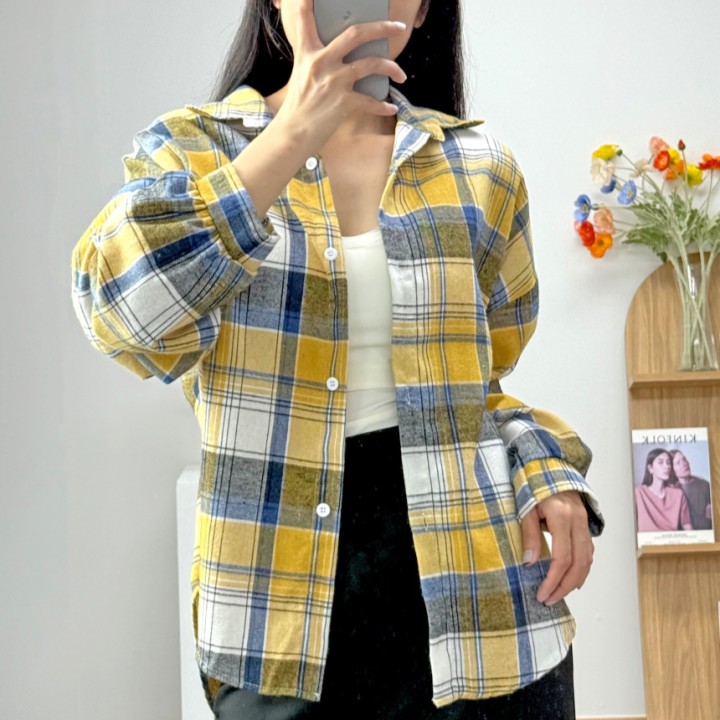 [체형커버] 오버핏 피치 기모 체크 셔츠남방