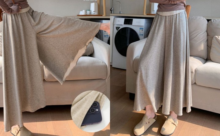 스판 최고!! 플레어 골지 와이드 밴딩 치마바지