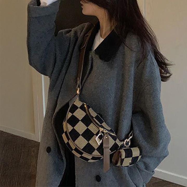[★무료배송★] 체크 캔버스 만두 크로스백