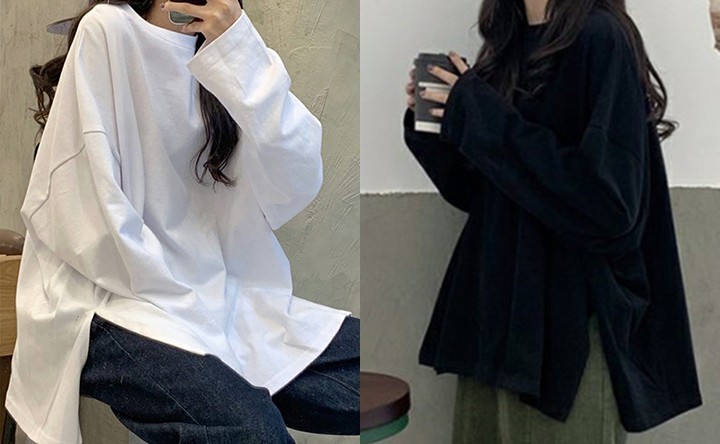 [★1+1할인★] 무지 레이어드 절개 트임 긴팔 티셔츠