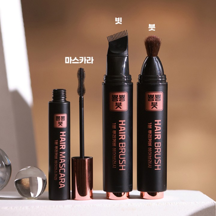 [뿅뿅붓] 초간편 1분 새치커버! GOLD 뿌리염색 흰머리 헤어브러쉬 6종세트 (자연갈색)